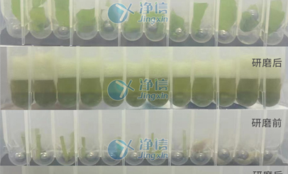 實(shí)驗(yàn)樣品:本次實(shí)驗(yàn)樣品為水稻葉片,此次選用凈信多樣品組織研磨進(jìn)行前處理操作,提取RNA實(shí)驗(yàn)。實(shí)驗(yàn)?zāi)康模褐参锖怂崽崛∈且粋€(gè)通過(guò)簡(jiǎn)易化、可操作性的手段獲取“pure” DNA和RNA的過(guò)程。植物組織越幼嫩新鮮所含的次生代謝產(chǎn)物越少,隨著植物組織的逐漸成熟,次生代謝產(chǎn)物的含量會(huì)逐漸增多。