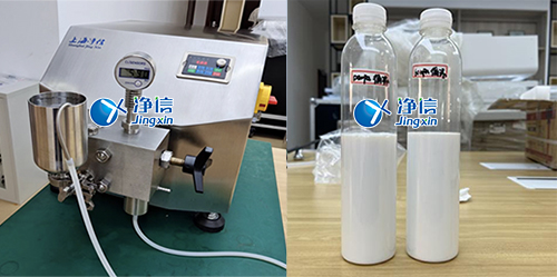 應(yīng)天津大學(xué)浙江紹興研究院客戶需求,對(duì)樣品油水混合乳液開(kāi)展實(shí)驗(yàn)操作。此次實(shí)驗(yàn)是在上海松江工廠科研室開(kāi)展進(jìn)行的,選用了凈信高壓納米均質(zhì)機(jī)JXNANO-15來(lái)對(duì)樣品油水混合乳液進(jìn)行實(shí)驗(yàn)操作。