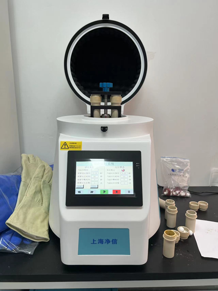 3、將全自動(dòng)樣品快速研磨儀開機(jī),設(shè)置參數(shù)本次實(shí)驗(yàn)參數(shù)設(shè)定值為:55HZ、研磨時(shí)間60秒,研磨3次。