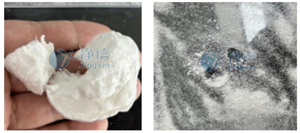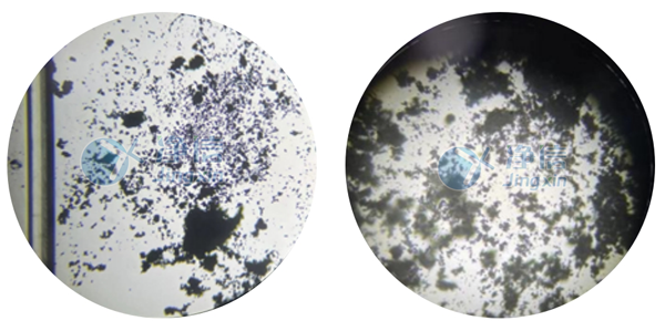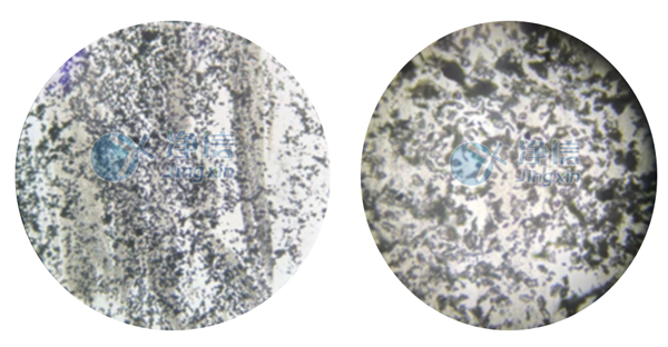 經(jīng)全自動浸入式液氮冷凍研磨儀處理后的PVA和絲素蛋白在肉眼觀察下,呈現(xiàn)細(xì)膩的狀態(tài)。通過顯微鏡觀察,和以前用舊款儀器研磨的樣品對比發(fā)現(xiàn),無論是在低倍還是高倍狀態(tài)下,通過凈信研磨儀處理的樣品的顆粒細(xì)膩程度都較優(yōu)。舊款儀器處理的樣品在高倍鏡下觀察還存在一定程度的組織結(jié)構(gòu),而凈信研磨儀處理的樣品已成均勻顆粒狀。
