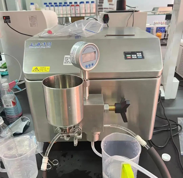 05.均質(zhì)結(jié)束達(dá)到效果后,即可泄壓將樣品接入準(zhǔn)備好的容器中