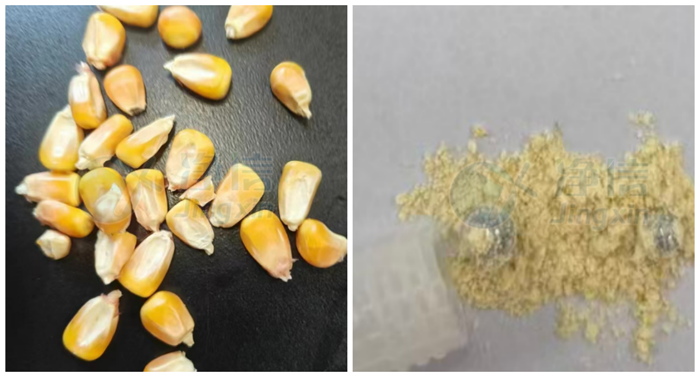 干玉米研磨前后對比,短時間內(nèi)將玉米粒研磨成粉狀