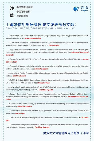 上海凈信發(fā)明的"Tissuelyser系列多樣品組織研磨機(jī)“和”JXFSTPRP系列三維運(yùn)動(dòng)的全自動(dòng)樣品快速研磨機(jī)",冷凍研磨機(jī),高能研磨機(jī),臼式研磨機(jī)等產(chǎn)品,先后在中科院、農(nóng)科院、醫(yī)科院等高等研究院所以及上海交通大學(xué)、復(fù)旦大學(xué)、浙江大學(xué)、香港中文大學(xué)、香港理工大學(xué)等大專院校的國(guó)家重點(diǎn)實(shí)驗(yàn)室受到青睞而被廣泛采用。依托強(qiáng)大的研發(fā)和生產(chǎn)服務(wù)能力,多年來已成功為數(shù)萬個(gè)實(shí)驗(yàn)室提供服務(wù)。
