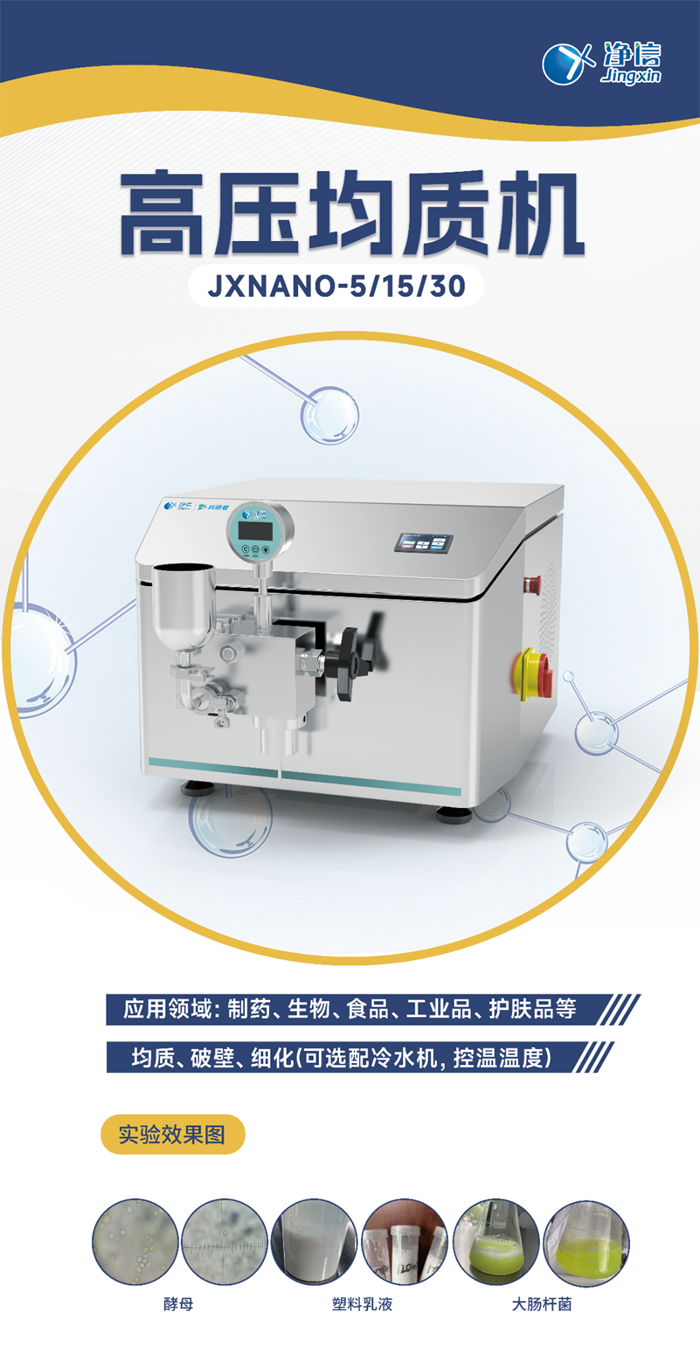 上海凈信高壓均質(zhì)機,可廣泛應(yīng)用于生物工程、制藥行業(yè)、食品工業(yè)、精細化工、化妝品等行業(yè)。能夠很好的提高實驗效率和數(shù)據(jù)質(zhì)量,解決你的困惑。高壓均質(zhì)機作為實驗室里的黑科技,為科研事業(yè)提供了強大的技術(shù)支持。它不僅具有好的均質(zhì)效果、操作簡單安全可靠的特點,還具備高效節(jié)能的優(yōu)勢。相信在未來的科研道路上,高壓均質(zhì)機將會發(fā)揮更加重要的作用,為實驗室的小伙伴們帶來更多的驚喜和收獲!