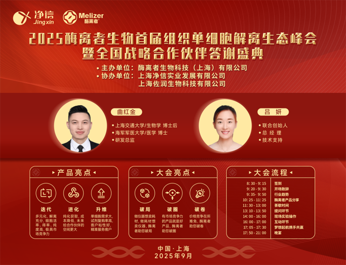 2025年9月15日,深耕單細胞解離領域的酶離者品牌,在品牌總部研發(fā)中心盛大召開2025國內(nèi)代理商大會。來自北京、上海、廣州、深圳、成都、西安等28個省市的代理商伙伴齊聚一堂,圍繞“技術賦能、市場協(xié)同、共贏增長”核心主題,共同學習酶離者全系列產(chǎn)品應用,探討國內(nèi)市場的開拓策略,凝聚合作共識,攜手開啟單細胞解離技術推廣的新征程。