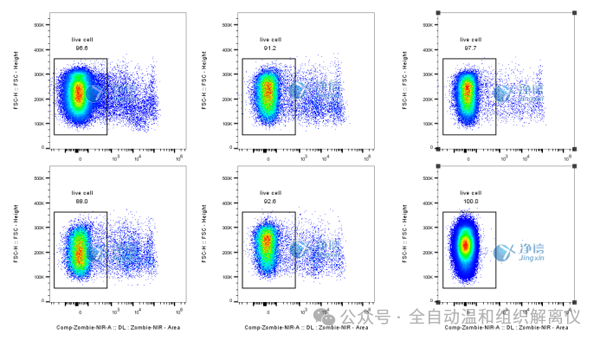實驗結(jié)果顯示,制備的脂肪單細胞懸液活率接近100%(下方流式結(jié)果圖),優(yōu)于常規(guī)制備方法的活率水平。高活率細胞不僅能確保下游實驗的準(zhǔn)確性,更能減少樣品浪費,降低科研成本。