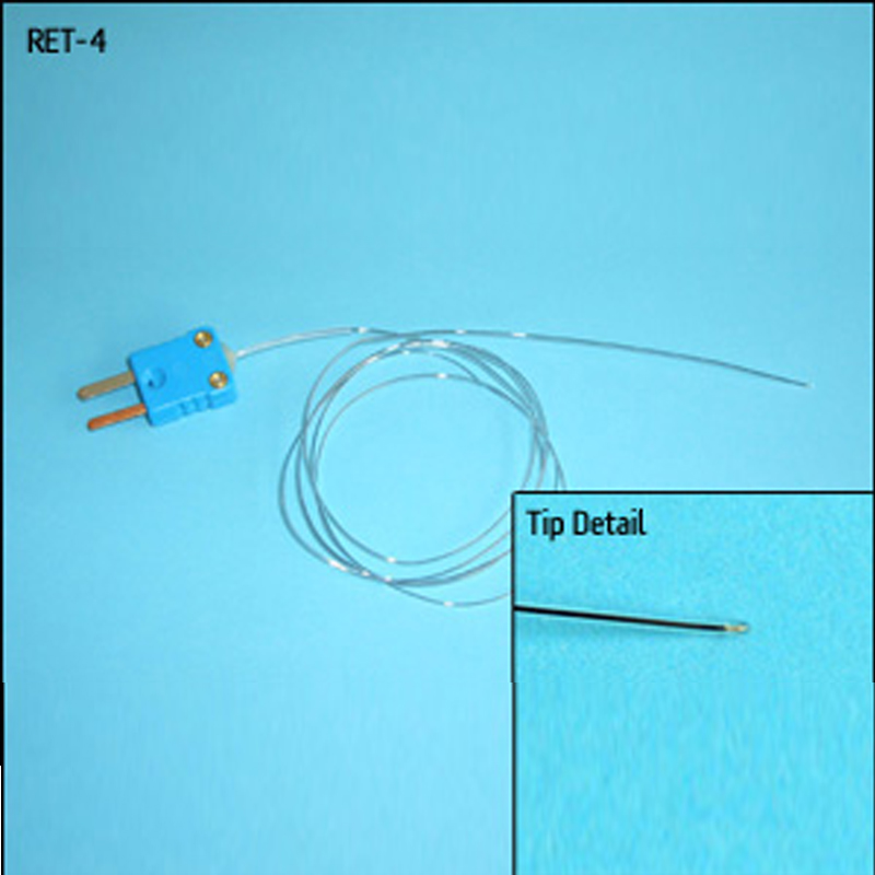 新 RET-4直腸探條用于探測(cè)體積很小的動(dòng)物 (幼鼠)。易彎曲的聚氨酯鞘頂端帶有光滑圓珠(見(jiàn)插圖)。 36” 長(zhǎng) (可以做的更長(zhǎng))。外徑為0.032” (頂端最大0.04”)。時(shí)間常數(shù)是0.18秒。 最高溫度 80°C??梢杂脷怏w消毒(ETO),或戊二醛溶液。