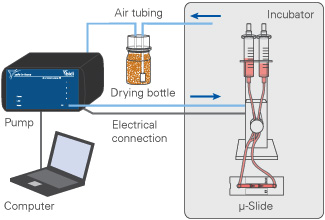 o流體裝置可以被放進(jìn)培養(yǎng)箱,而ibidi泵在培養(yǎng)箱外
