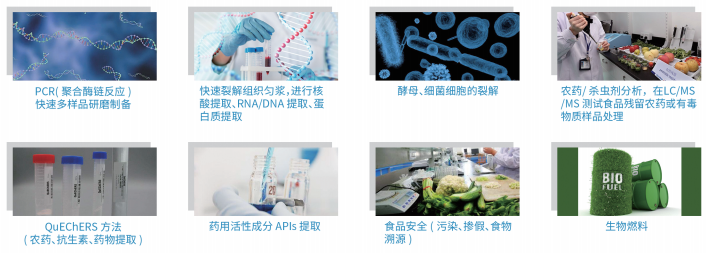 應(yīng)用領(lǐng)域: | 組織均質(zhì)、研磨、細(xì)胞破碎、勻漿、材料分散、制備、樣品混勻、振蕩 |