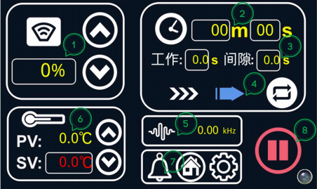 顯示內(nèi)容 | 頻率、溫度、功率、時(shí)間等顯示 |