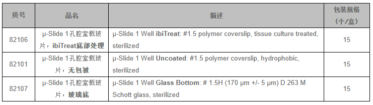 l也可提供玻璃底的載玻片: μ-Slide 1 Well?Glass Bottom 適用于特殊顯微鏡應(yīng)用