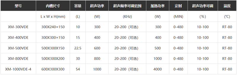 2、超聲功率及頻率:清洗機(jī)的每個超聲換能器發(fā)射功率為50W。超聲電功率10-100%任意調(diào)節(jié);超聲頻率可根據(jù)要求自動切換,可選切換頻率為三頻 四頻十一頻十三頻等(標(biāo)準(zhǔn)出廠模式為三頻),頻率可選調(diào)范圍:20-200KHz可選,符合藥典要求。
