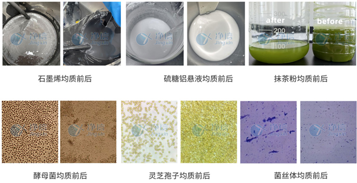 材料科學(xué):制備石墨烯,碳納米管、導(dǎo)電漿料、電阻漿料的生產(chǎn)和制備。通過均質(zhì)化處理改善材料的導(dǎo)電性能和光滑性。